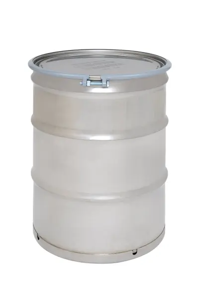 55 Gallon Open Head Stainless Steel Drum With Bolt Ring Closure - 1.5/1.5/1.5